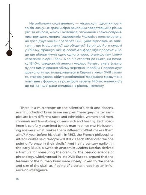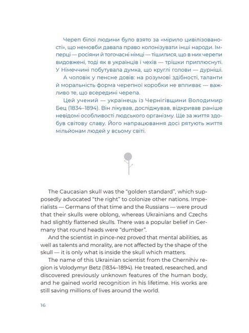 Запрошую в мандрівку долями тих, що називали себе українцями і своєю працею робили життя інших ліпшим. Тих, чиї цінності, принципи та віра в людство стали гармонійною частиною європейської культури. Ми завітаємо до мислителя Григорія Сковороди, який вчить слухати серце й бути вільним; до художниці Катерини Білокур, яка попри всі негаразди свого життя дарувала людству прекрасне; до Володимира Беца, який довів рівність націй на анатомічному рівні. Я відкрию тобі ще чимало цікавих облич.