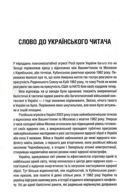 Кінець холодної війни понад 30 років тому завершив найнебезпечніший період в історії людства, відсунувши загрозу ядерної війни та катастрофи. Тоді світові держави ухвалили надважливе рішення — зменшити ядерний потенціал. Однак 2022 року дипломатичні досягнення світової безпеки були анульовані через повномасштабне російське вторгнення на територію України. РФ оголосила про підвищений рівень готовності своїх ядерних сил. У відповідь уряди США та Великої Британії публічно пригрозили, що блискавично зреагують у разі застосування ядерної зброї в Україні або поза її межами. Світ балансує на порозі нової атомної ери. Щоб зрозуміти всі можливі наслідки й запобігти глобальній катастрофі, ми маємо вивчити уроки найнебезпечнішого періоду холодної війни — Карибської кризи.