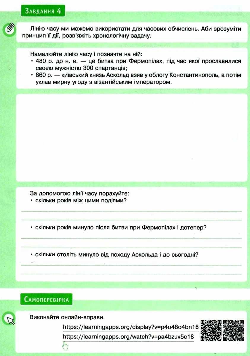 Я дослідник Вступ до Історії 5 клас Робочий зошит учня НУШ. Містить 10 уроків, систему завдань для 10 уроків на формування історичної компетентності: завдання, які необхідно проаналізувати, обдумати і записати коротку відповідь, короткі завдання на заповнення таблиці, формулювання визначення, роботу з ілюстраціями; творчі завдання, завдання на перевірку знань за допомогою онлайн-вправ.