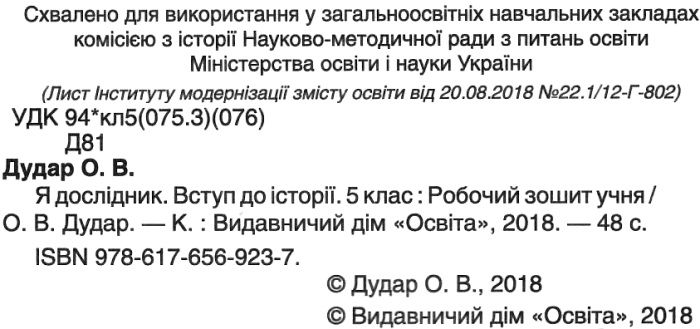 Я дослідник Вступ до Історії 5 клас Робочий зошит учня НУШ Дудар О. Освіта