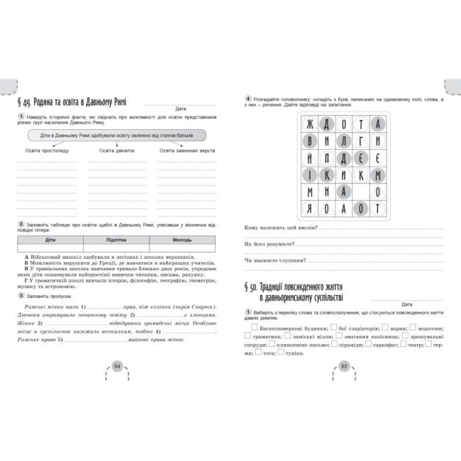 У посібнику застосовано різні прийоми, аби сформувати в учнів навички самостійної роботи з історичними джерелами, ілюстративним матеріалом, термінами і поняттями. Також запропоновано творчі завдання, що спонукатиме до висловлення власних думок, сприятиме формуванню загальних життєвих цінностей.