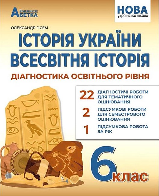 Діагностика освітнього рівня Історія України Всесвітня історія 6 клас НУШ Авт: О. Гісем Вид-во: Абетка 93206