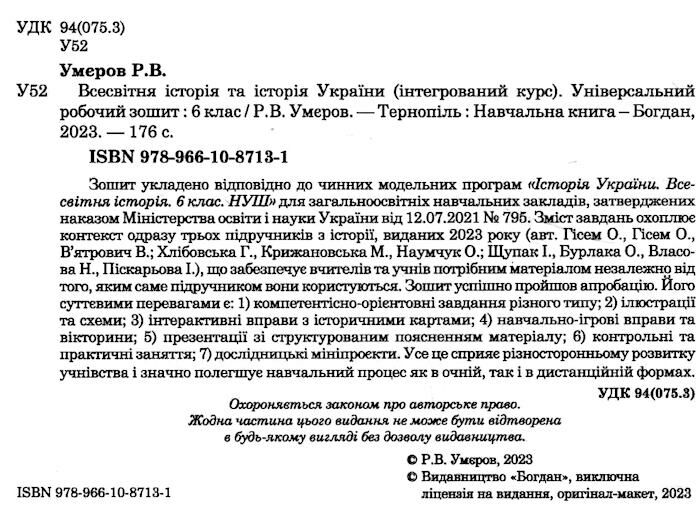 Універсальний робочий зошит Всесвітня історія та історія України Інтегрований курс 6 клас НУШ Авт: Р.В. Умєров Вид-во: Богдан 90834