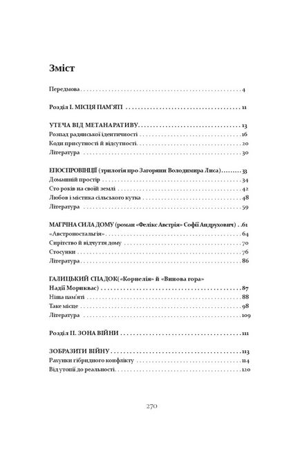 Літературне топографування місцевості представлено в трьох проекціях. У першому розділі автор зосередив увагу на характерному діагностуванні «місць пам’яті» (П’єр Нора), що втілюють механізми культурного освоєння – не лише простору, а й часу. У третьому розділі розглянуто феномен місць проблематичних або «не-місць» (Марк Оже): позбавлені властивостей, вони й людину прирікають на аналогічне зречення власної тотожності. Нарешті, перший і третій розділи книжки розділено пунктирною зоною війни, зокрема в її гібридній якості, яку не можна конкретно визначити. Таким чином, місця чергуються з не-місцями, реальну конкретику карти застує символічна й уявна локація, а географія неодмінно поєднується з історією. Принаймні такий образ світу пропонує художня література, адже їй ідеться передусім про людину й людські уявлення простору, а не про політичні чи геодезичні мапи. У цьому людському світі зовсім інакші, ніж у природі, вітри, бурі й урагани, – не менш стихійні й не менш руйнівні, однак інші. І якщо читач має відчуття, що зараз ми мимоволі опинилися в епіцентрі однієї з таких стихій, то в художній літературі він знайде поживний ґрунт для того, аби це відчуття ідентифікувати, збагнути й осмислити"