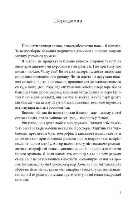 Двоє українців мандрують далеким і загадковим Непалом. Кожен день подорожі переповнений відкриттями, що викликають дитячий захват, – настільки все яскраве й різноманітне. Рисові тераси й овечі отари на вузьких гірських стежках. Залиті сонцем восьмитисячники і легіт водоспадів. Підвісні мости над урвищами та вервечки кольорових буддійських прапорців. Бананові сади та курява на запилених дорогах. І це лише мала частина побаченого автором і його супутником Миколою. Така вона, Азія – не залишить байдужим нікого. Запрошуємо читачів у цьому переконатись.