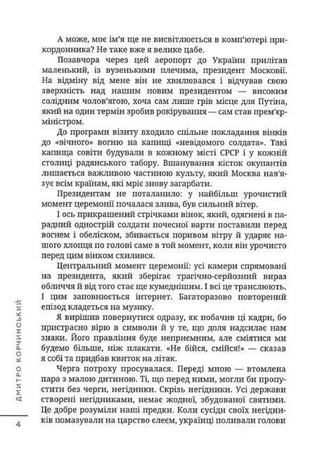 І знову на арені подій нового роману Дмитра Корчинського опиняються персонажі з попередніх книг. Характер героїв у звичній для автора манері прописано відчайдушними вчинками та акціями прямої дії. Для вдалої маневреності чину відкриваються ширші горизонти, позаяк дійові особи твору цього разу мандрують коридорами часу. Засекречена розробка спецслужб дозволяє закидувати агентів впливу у вимір будь-якої епохи аби їхніми руками вносити потрібні корективи у історію. Трансчасові рейси історією України збалансовано чималою кількістю подій відносно свіжої давнини. Ця книжка — барвисте літературне втілення рознуздано-авантюрного стилю життя, розробником та селекціонером якого є Дмитро Корчинський.
