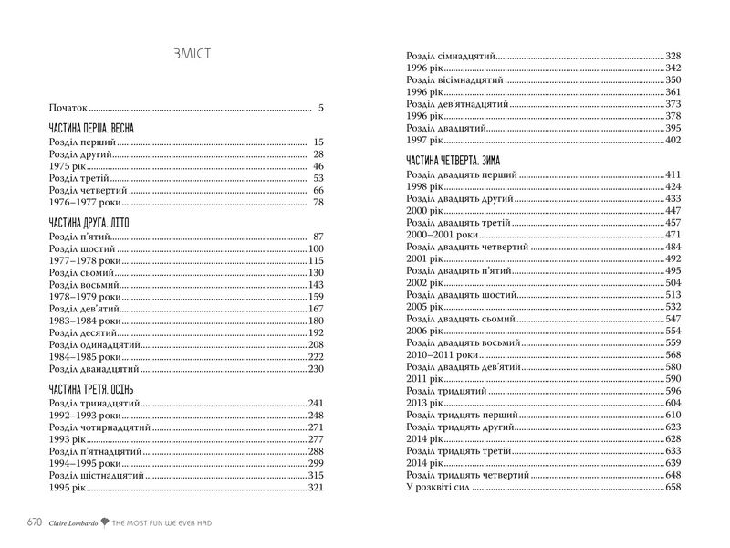 Ця книжка — відверта сімейна сага. Клер Ломбардо досліджує життя, любов та неминучі зміни, що відбуваються в родині Соренсонів упродовж більш ніж сорока років.