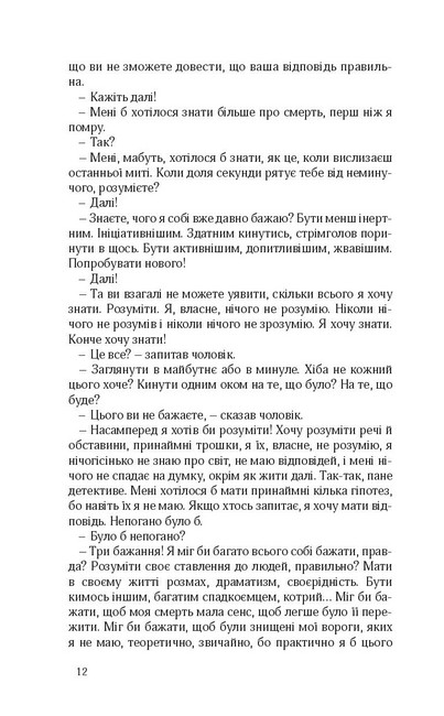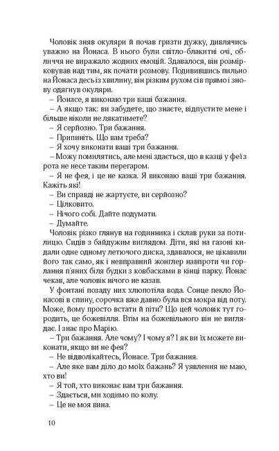"Його інтелект не знаходив сенсу і не давав відповідей. У коханні до жінок був сенс і відчуття відповіді. Бували дні, хвилини, коли він відчував, що ось вона — відповідь. Розчинитись у Марії — це було відповіддю. В жінці, в яку був закоханий, він потайки відчував універсум".