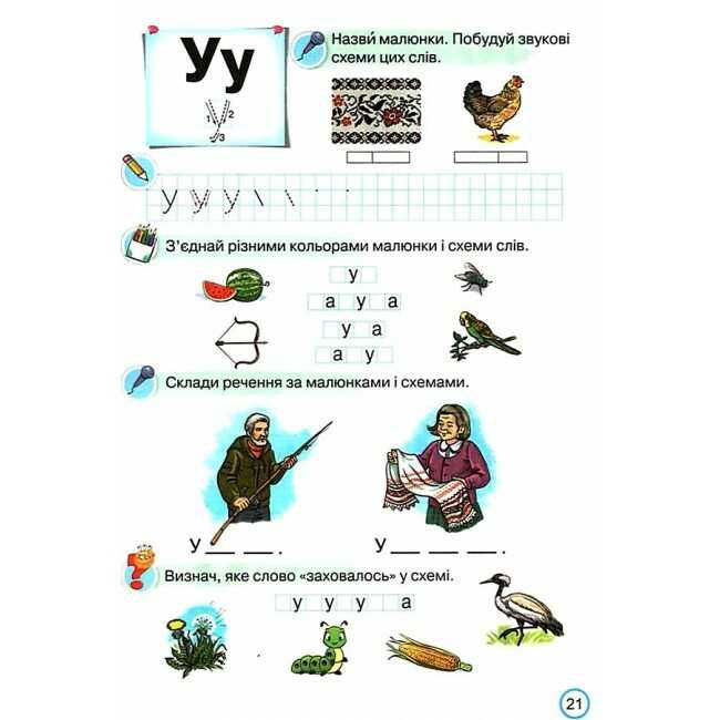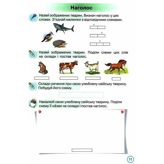 Зошит з читання Супутник букваря 1 клас НУШ Нова українська школа. Призначений для виконання практичних робіт на уроках читання. У ньому вміщено завдання на складання речень і побудову їх схем, звукових схем слів, встановлення відповідності між малюнками.