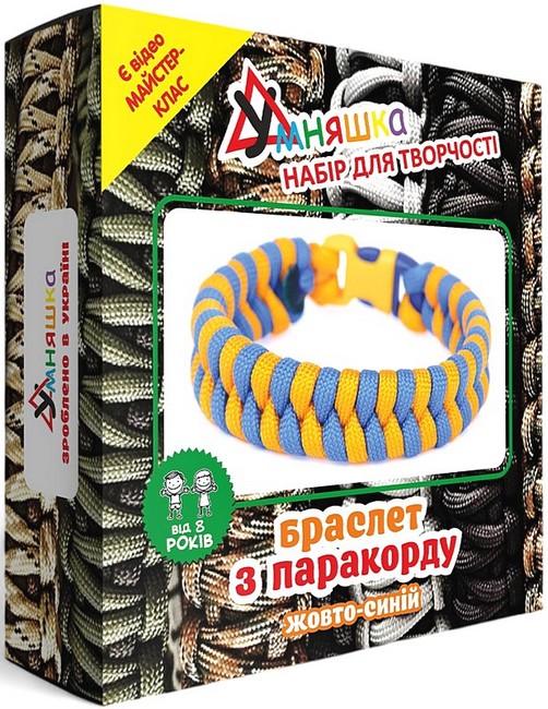 У наборі: шнур-паракорд, вся необхідна фурнітура. Є відео майстер-клас. Для дітей від 8 років.