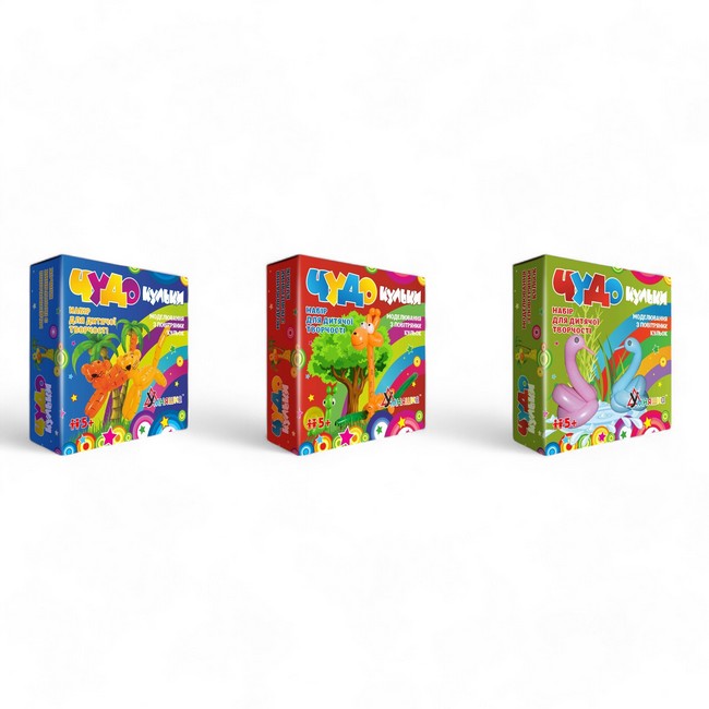 В наборі: 10 різнокольорових латексних шарів Sempertex для твістінга довжиною 30 см, насос, маркер, інструкція по виготовленню - 7 фігур.
