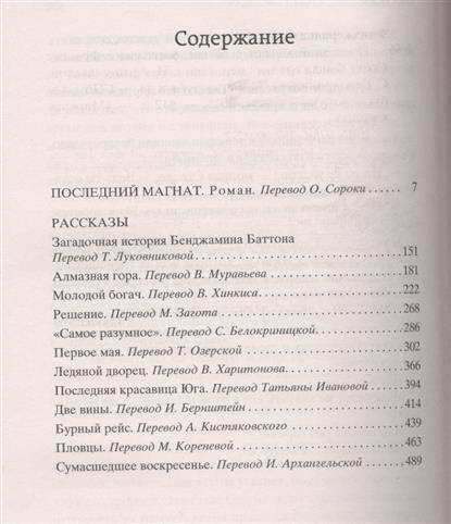 Фрэнсис Cкотт Фицджеральд, возвестивший миру о начале нового века — «века джаза», стоит особняком в современной американской классике. Его книгами зачитывались при жизни, их экранизировал Голливуд, он главный персонаж светских хроник и притча во языцех у современников. Прошло время, схлынула пена дней, забылись эксцентрические выходки и скандалы, остались его произведения — подлинные бриллианты в литературе всех времен и народов, повлиявшие на формирование новой мировой литературной традиции XX столетия. В настоящий сборник вошел последний роман Фицджеральда «Последний магнат», а также лучшие рассказы автора, каждый из которых — настоящий шедевр короткой прозы.