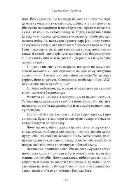 Роман шведської письменниці, лавреатки Нобелівської премії з літератури Сельми Лаґерлеф «Сага про Єсту Берлінґа», написаний у жанрі магічного реалізму, вважають одним із найхимерніших і водночас найулюбленіших творів Скандинавії. На тлі зимової краси Швеції розгортається історія Єсти Берлінґа — безхатька, жебрака і священника, позбавленого сану за пияцтво, врятованого від смерті власною зухвалістю, схильністю до авантюр і однією випадковою зустріччю.