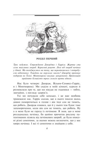 \nЯкщо ви бажаєте дістати заряд гарного настрою, то пропонуємо прочитати повість «Троє в одному човні (як не рахувати собаки)». Для тих, хто збирається здійснити подорож річкою, досвід персонажів книжки просто безцінний. Ви зможете дізнатися, як не скинути з човна напарника та не облити водою пасажирок; як ставити вітрило, щоб воно не обгорнулося навколо вас; як, гойдаючись на хвилях, приготувати яєчню. Несподіваний комізм, що інколи доходить до абсурду, притаманний більшості оповідань цієї книжки.