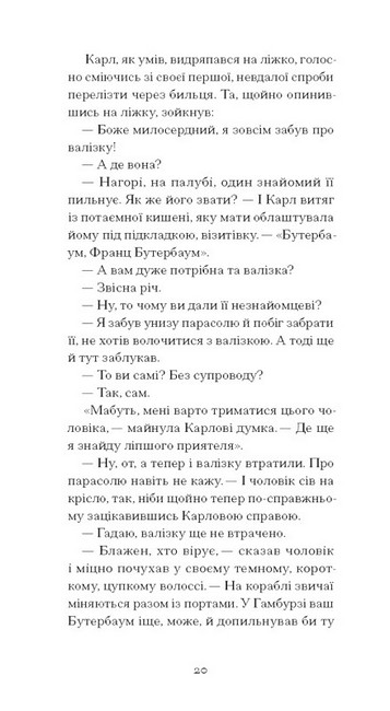 «Зниклий безвісти» — перший роман Франца Кафки, незавершений рукопис якого Макс Брод знайшов після Кафчиної смерти 1924 р. і видав під заголовком «Америка»; саме з цього тексту, вочевидь, виростає автор таких славетних творів світової класики, як «Замок», «Процес», «Перетворення». Цей прикметно модерністський «роман виховання» — розповідь про юнака-емігранта, своєрідна історія змужніння, сподівано для Кафки радше сувора й не вельми милосердна, ніж погідна й привітна, повна непередбачуваних поворотів долі, а однак, розказана спокійно й легко, подекуди навіть грайливо, без фаталізму і абсурдности, притаманних пізнішим авторовим творам.