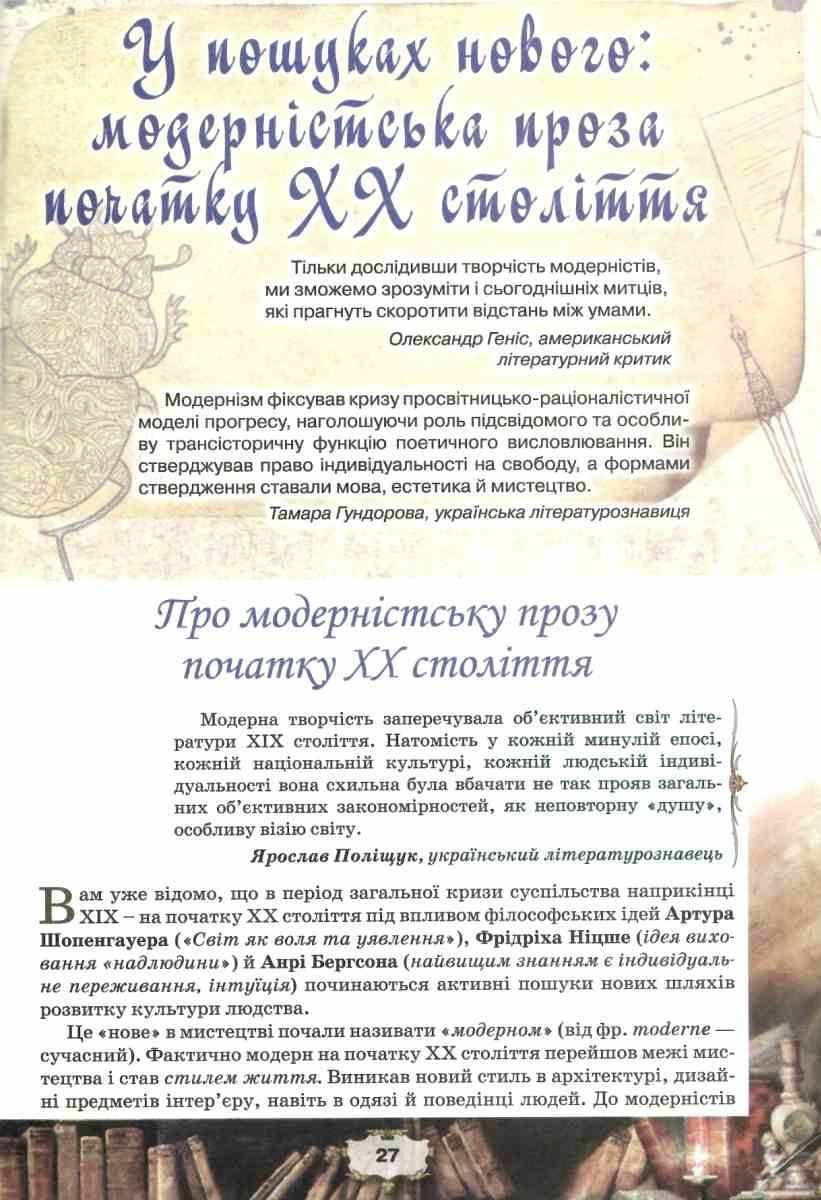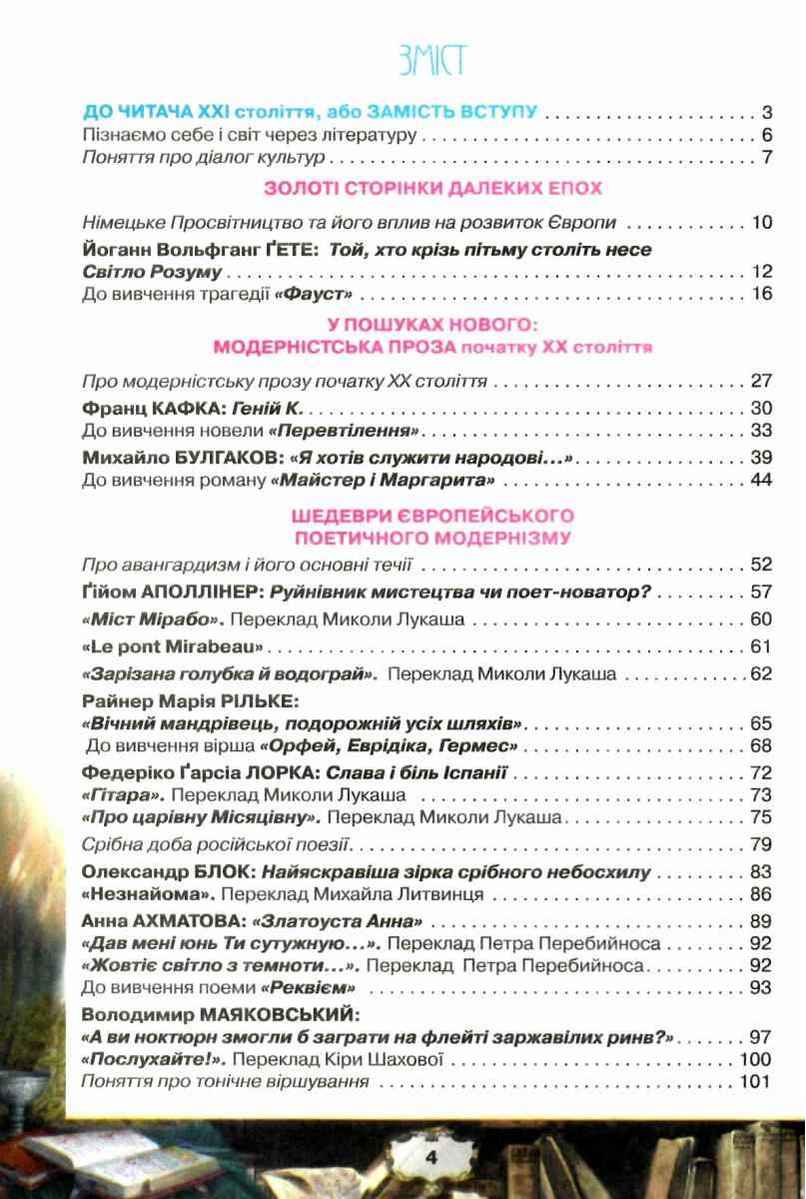 Вітаємо вас, любі наші читачі! Пропонуємо продовжити пізнавати себе через світ зарубіжної літератури. Готуючи цей підручник, ми добре усвідомлювали, що сьогодні, у часи суцільного Інтернету, можна достатньо швидко й легко знайти будь-яку інформацію. Тому нашим завданням не було подати щонайбільше відомостей з тієї чи іншої теми ми прагнули розкрити своєрідність художнього світу письменника, показати твір як незавершену завершеність, дати вам поштовх для самостійних роздумів, навчити перекладати прочитане мовою власних вражень і понять.