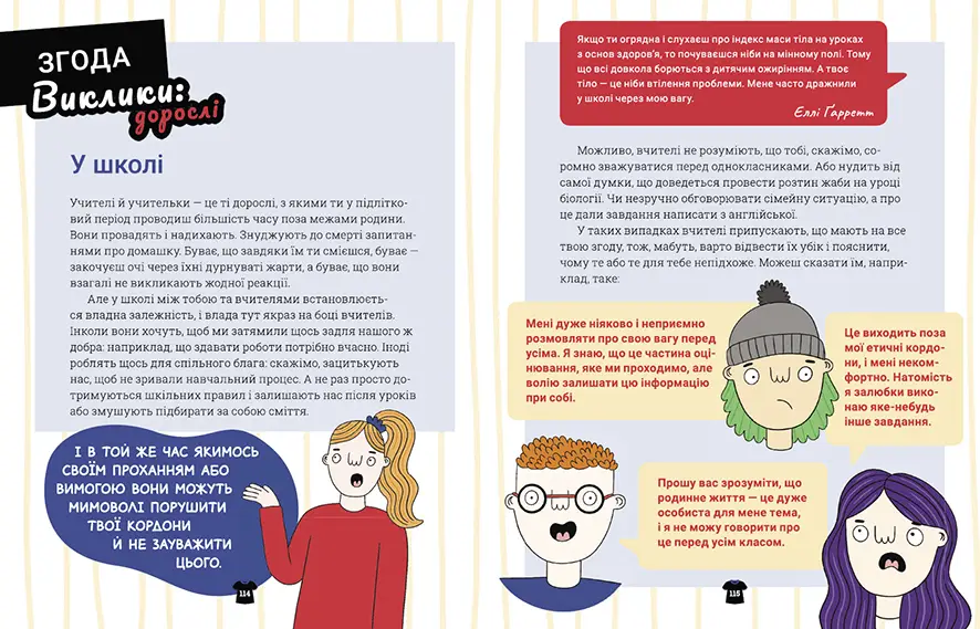 Унікальний путівник, який неодмінно допоможе вам осягнути правила культури згоди. Ця цікава, пізнавальна й легка для сприйняття книга стане в пригоді й кмітливим одинадцятиліткам, і допитливим чотирнадцятилітнім, і батькам, які хочуть допомогти своїм дітям знайти відповіді на безліч складних запитань.