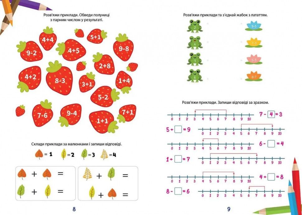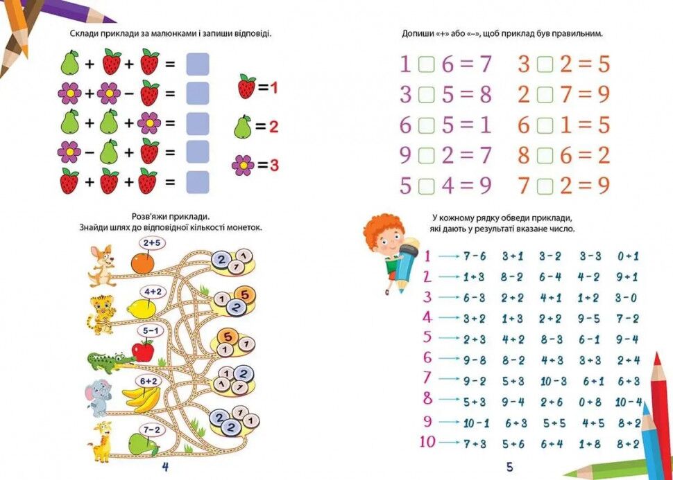 У книжці дібрано цікаві завдання на розвиток обчислюваних навичок. Дитина потренується розв’язувати прості приклади, проходити математичні лабіринти, ланцюжки, виконувати ігрові вправи. Завдання сприяють розвитку логіки, аналітичних і математичних здібностей дитини.