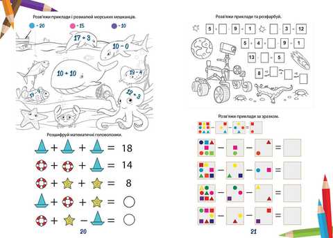 Захопливі, цікаві завдання — саме те, що треба для радісного навчання. У книжці зібрані прості математичні приклади, головоломки, ігрові вправи на вивчення складу числа, що стануть чудовим помічником у розвитку математичних навичок дитини.