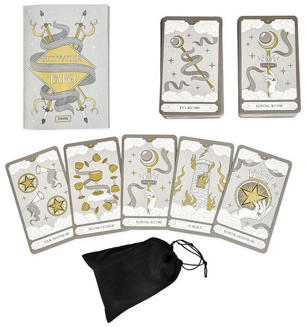 Ця колода унікальна і вирізняється стильним дизайном: сірий колір створює спокійну атмосферу, а золоті орнаменти підкреслюють важливі деталі, надаючи зображенням ще більшої глибини. Ідеально підходить як для колекціонерів, так і для тих, хто практикує ворожіння.