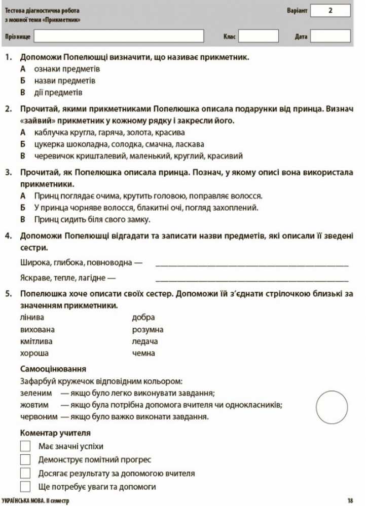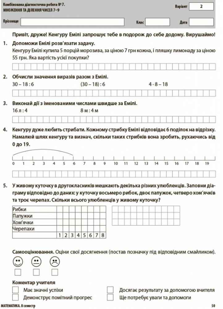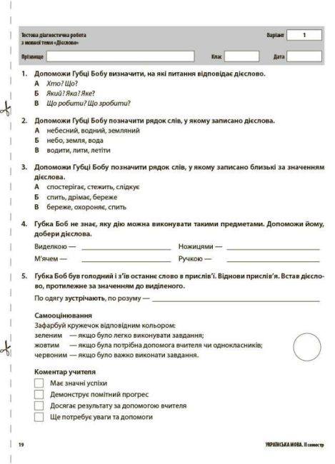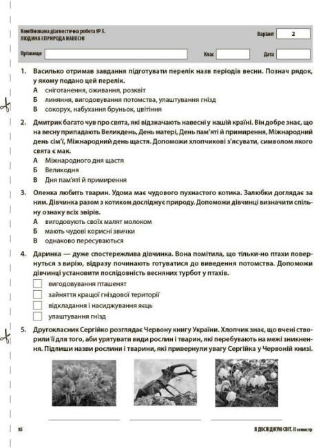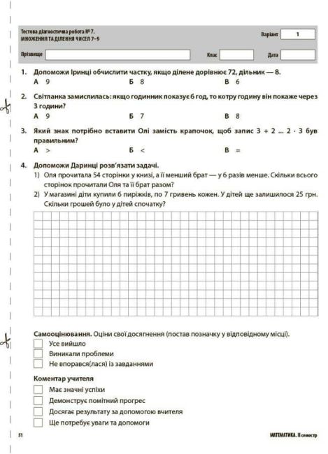 Кожна діагностична робота представлена у двох варіантах, розміщених на окремих аркушах, які легко можна копіювати та використовувати як роздатковий матеріал.