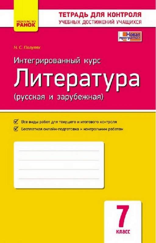 Тетрадь для контроля учебных достижений учащихся Интегрированный курс Литература русская и зарубежная 7 класс Новая программа Авт: Полулях Н.С. Изд-во: Ранок 13381