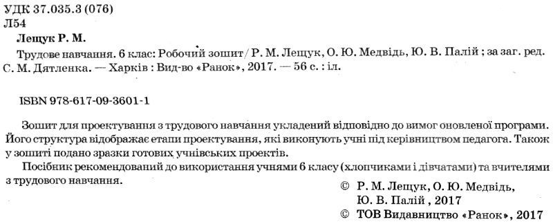 Робочий зошит Трудове навчання 6 клас Оновлена програма Авт: Лещук Р.М. Медвідь О.Ю. Палій Ю.В. Вид-во: Ранок 66479