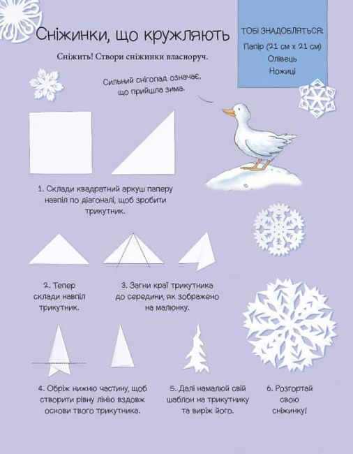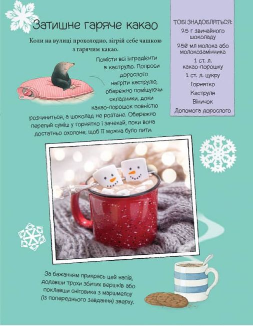 Зима — це сніжно весело! З таким напарником як “Однією сніжної ночі” можна написати листа Святому Миколаю, приготувати пряниковий будиночок чи смачні ласощі з зефіру, зробити духм’яний гарячий напій, розфарбувати малюнок або створити паперову сніжинку та багато іншого!