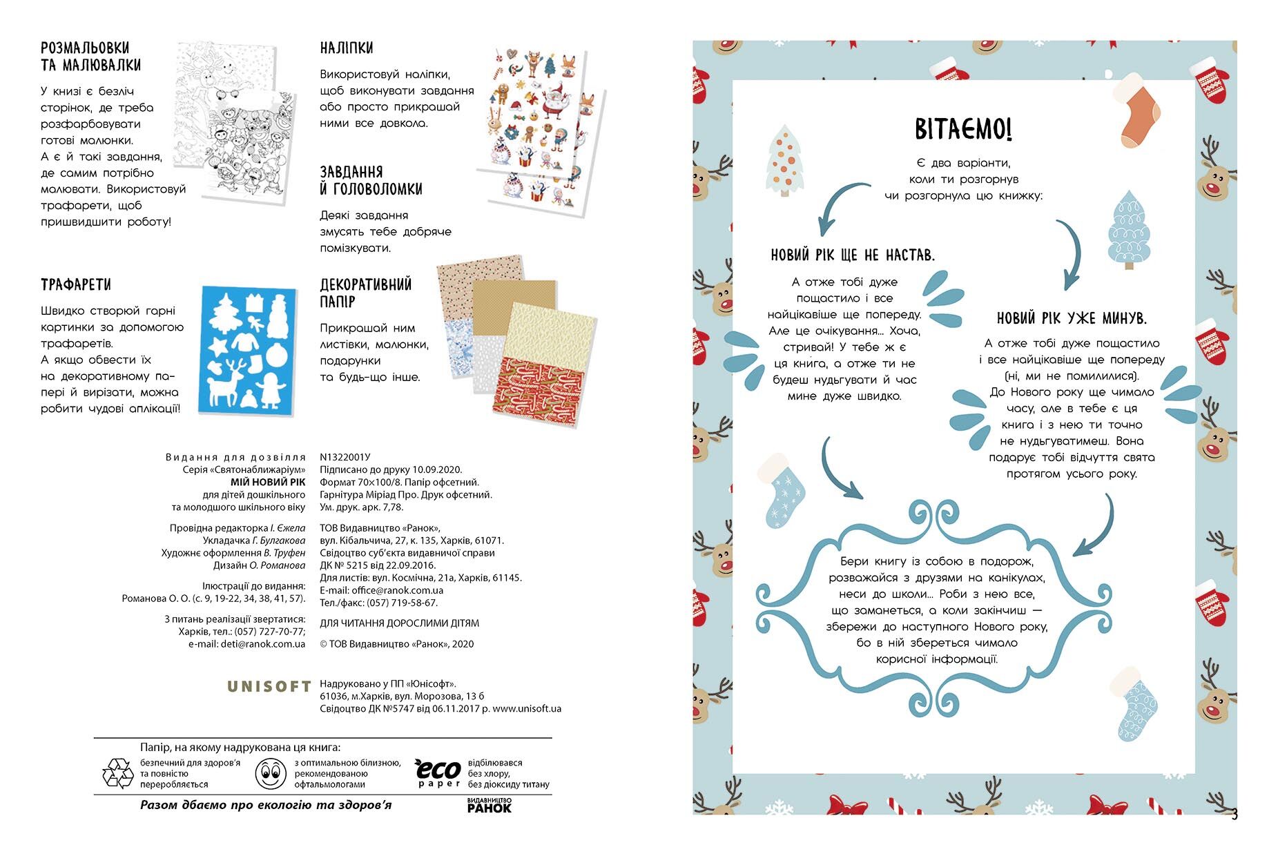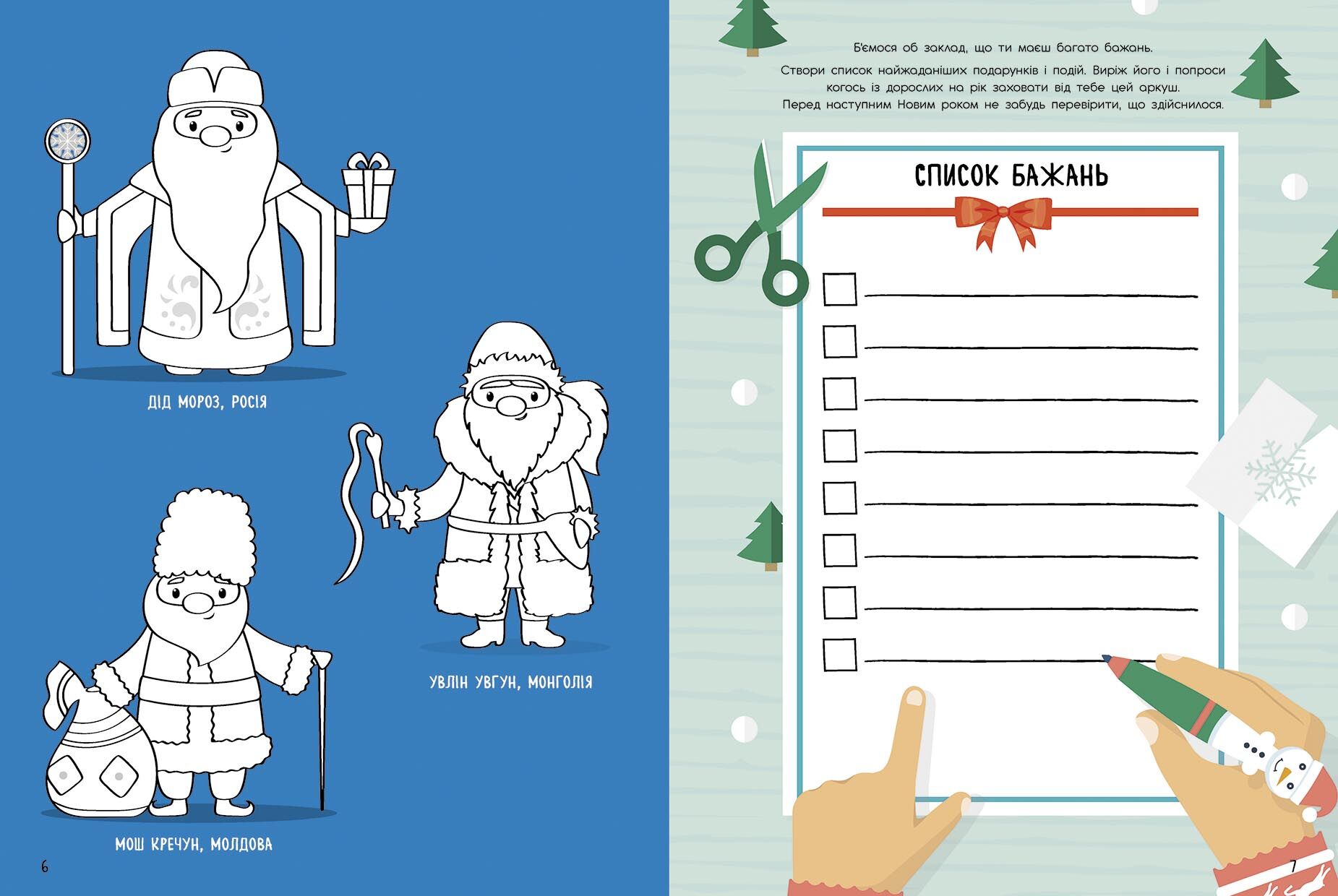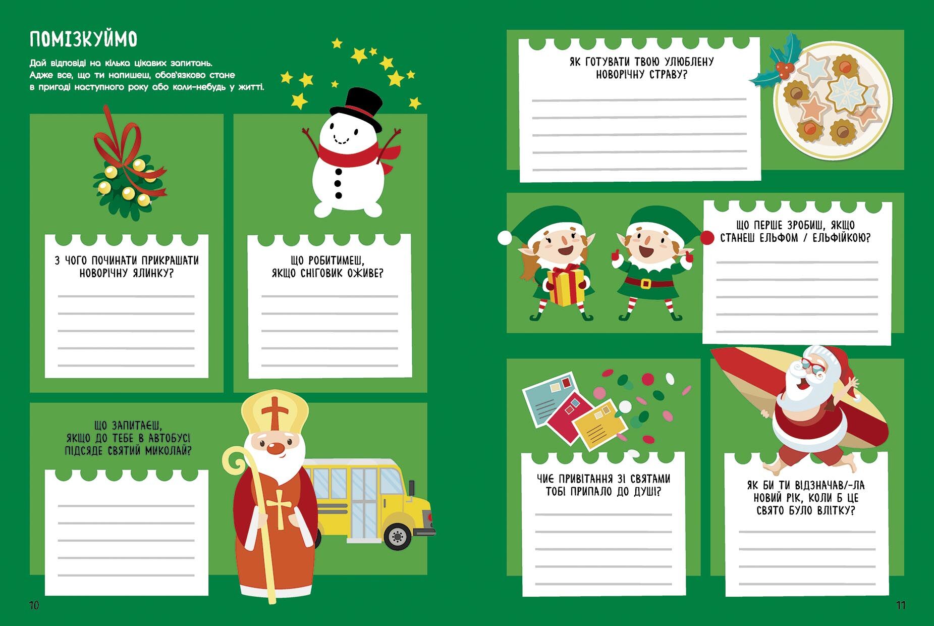 Ця книга розповідає про дивовижних персонажів, що приносять подарунки дітям, і про традиції відзначання Нового року в різних країнах. У ній є завдання-активіті, трафарети й декоративний папір, а найголовніше – багато місця для нотаток. Наприкінці книги на дітей чекає новорічна гра й безліч наліпок, що допоможуть створити святковий настрій на весь рік.
