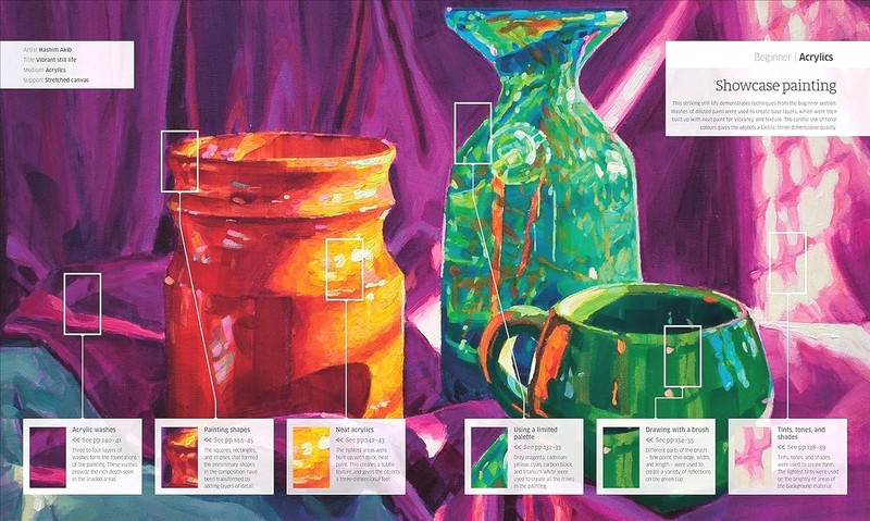 Повністю проілюстровані покрокові майстер-класи від професійних художників проводять вас через понад 80 технік малювання, включаючи укладання плоского прання, фарбування хутра та створення імпасто-скульптурних ефектів. Усі методи супроводжуються надихаючими вправами та проектами, щоб спробувати вдома допомогти вам розвинути свої навички, відкрити власний стиль та вирости як художник.