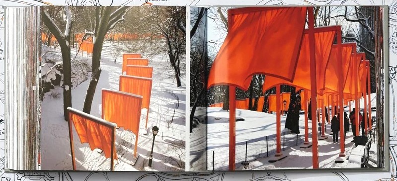 This special Collector’s Edition documents the entire project from conception to realization. Designed by Christo and Jeanne-Claude, with texts by Jonathan Henery and photographs by exclusive photographer Wolfgang Volz, it is a lasting and stunning souvenir of this remarkable work of art. Each copy comes with a 24 x 24 cm (9.4 x 9.4 in.) piece of the project’s original fabric and features over 100 preparatory drawings and collages, as well as 900 important documents, engineering drawings, technical data, maps, and 1,441 photographs from 1979 to 2005.