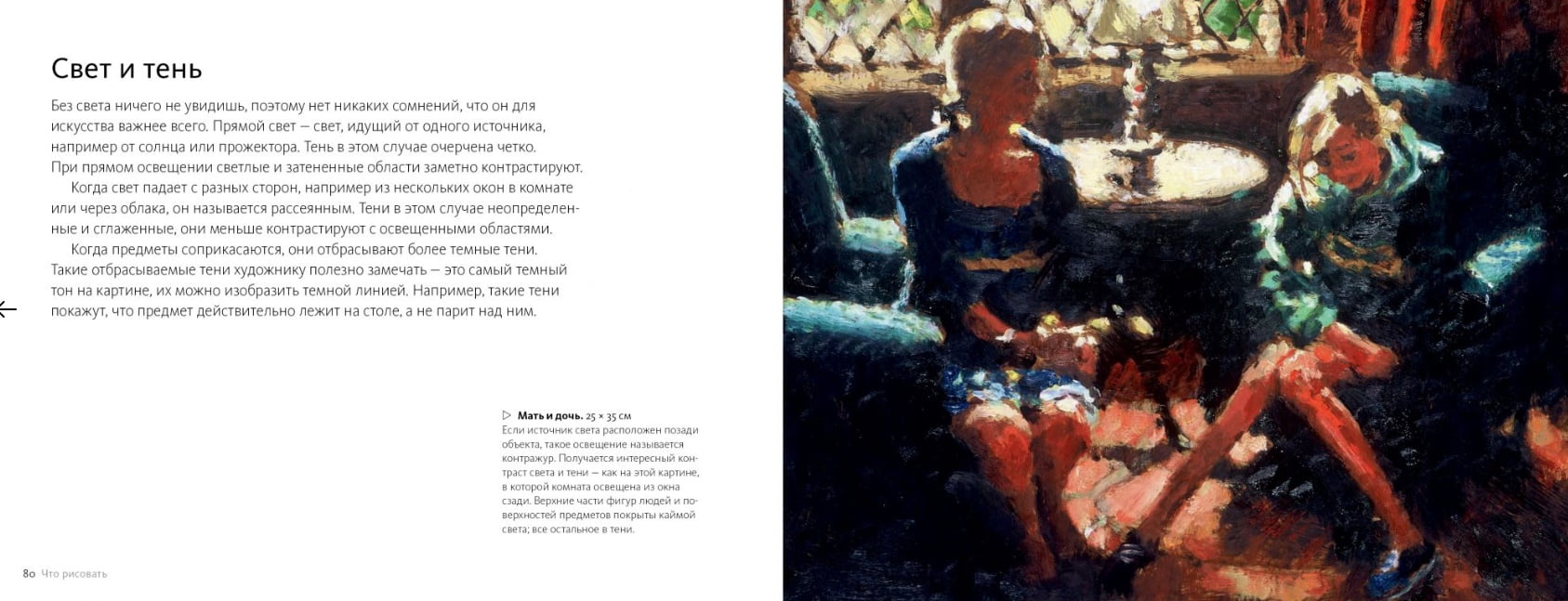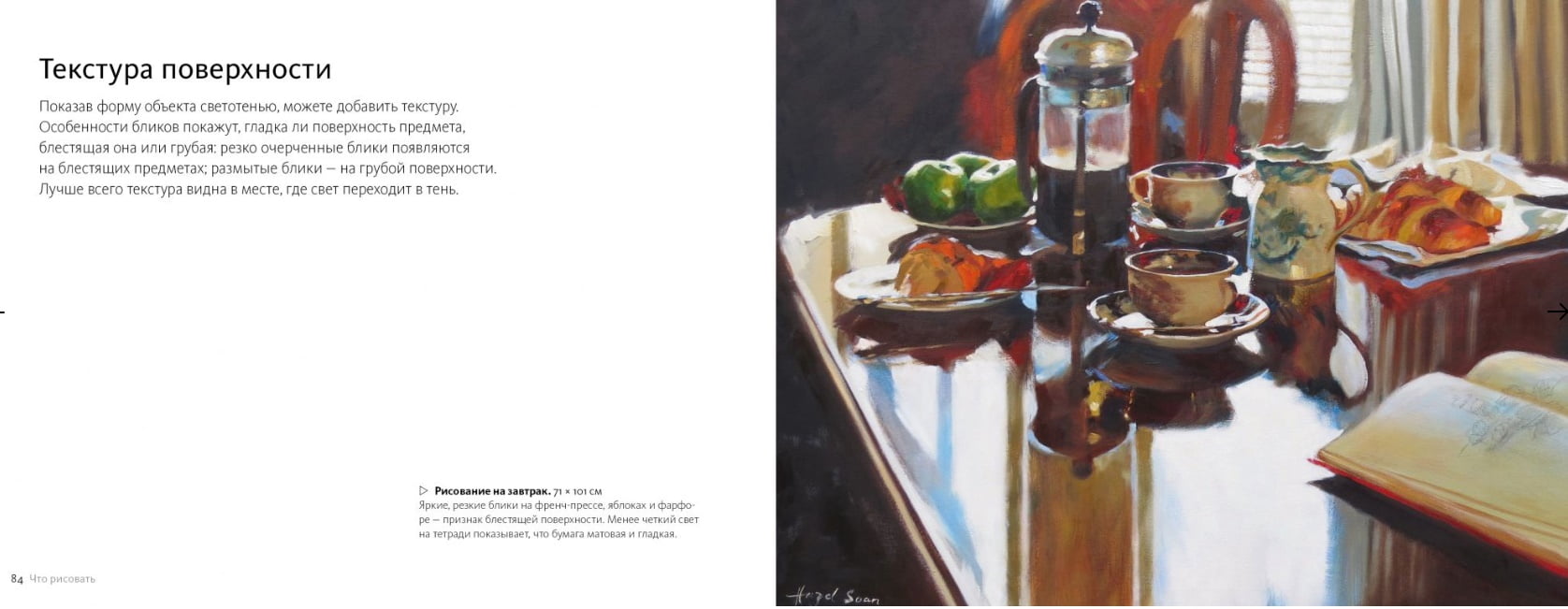 «Масляные краски идеальны для новичков — с ними легко работать и результат виден сразу. Маслом можно писать почти на любой поверхности любого размера и с помощью самых разнообразных приемов и инструментов. Маслом пишут и свободно, и детально. Картины, написанные маслом, яркие и нетускнеющие, их можно повесить где угодно. Книга читается быстро — меньше чем за час вы узнаете все необходимое и сможете начать рисовать сами». (Хэйзел Соун)