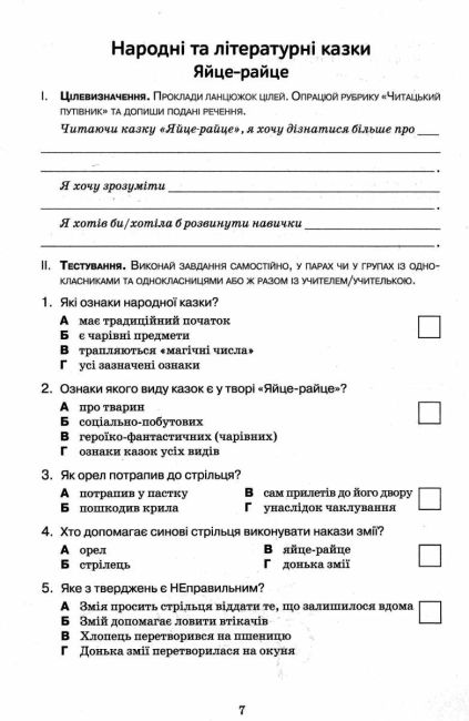 Подано різнорівневі запитання та завдання в тестовій формі (закритого і відкритого типів), творчі завдання для поточного оцінювання роботи над художніми творами та підсумкові семестрові роботи, що сприятиме формуванню предметної читацької та ключових компетентностей п’ятикласників/п’ятикласниць.