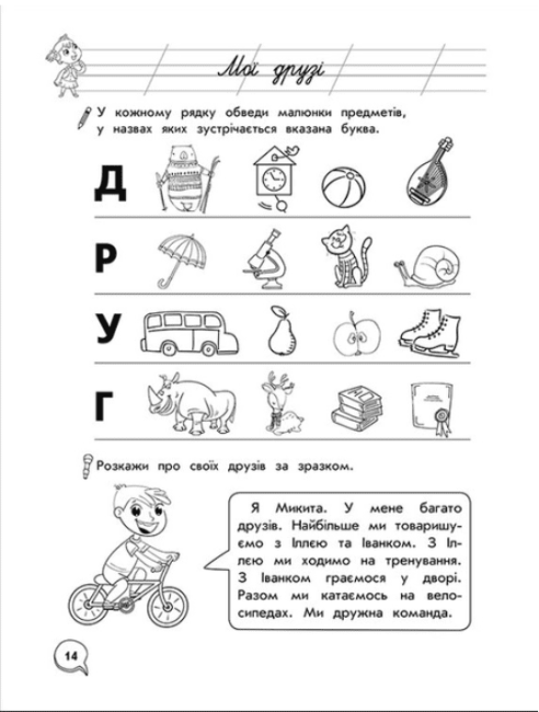 Тренажер з навчання грамоти Розвиток мовлення це сучасний посібник, який сприяє формуванню мовленнєвих навичок, розвитку творчого мислення та пізнавальних здібностей молодших школярів. Сьогодні комунікативному вихованню учнів приділяється особлива увага, адже успіхи в мовленнєвому розвитку визначають також результативність засвоєння інших шкільних дисциплін, забезпечують дітей необхідним досвідом. Завдяки цьому тренажеру дитина зможе: об’єднувати інформацію з різною тематикою, явище, поняття, предмет, проявляти творчу активність під час складання текстів і діалогів, збагатити свій словниковий запас.