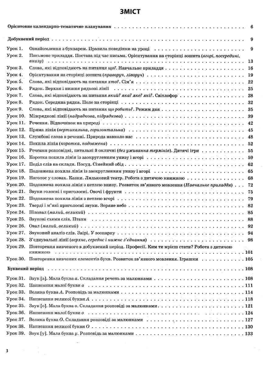 Посібник містить орієнтовне календарно-тематичне планування та розробки уроків української мови навчання грамоти у 1-му класі Нової української школи, складені відповідно до вимог нового Державного стандарту початкової освіти 2018 за Типовою освітньою програмою авторського колективу під керівництвом О. Я. Савченко.