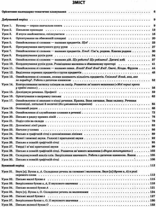 Розподіл годин і тематика уроків відповідають змісту підручника М.С. Вашуленка, О.В. Вашуленко Українська мова Буквар підручник для 1 класів закладів загальної середньої освіти у 2-х частинах Освіта 2018.