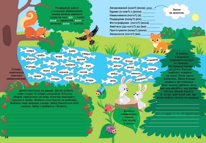 Українську мову можна вивчати розважаючись! Цей тренажер стане в пригоді тим, хто хоче розкрити її секрети, опанувати складні мовні поняття швидко й легко, адже всі завдання створені в ігровому стилі, а яскраві сюжетні ілюстрації не тільки полегшать сприйняття матеріалу, а й будуть своєрідною підказкою для виконання різноманітних вправ.