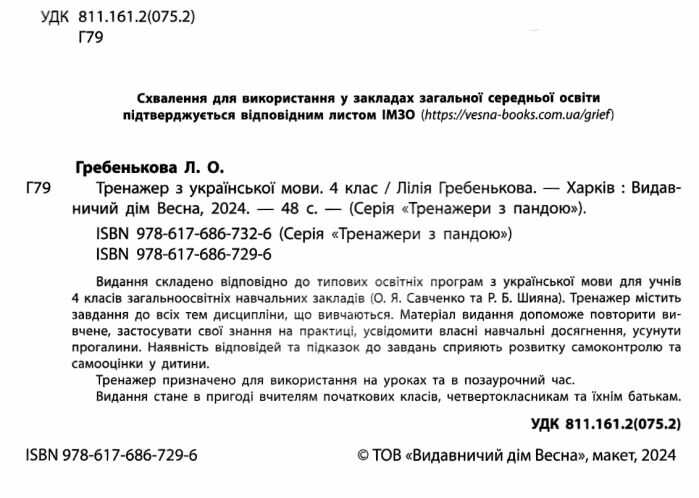 Тренажер з української мови Вчимося з Пандою 4 клас НУШ Авт: Л. Гребенькова Вид-во: Весна 103097