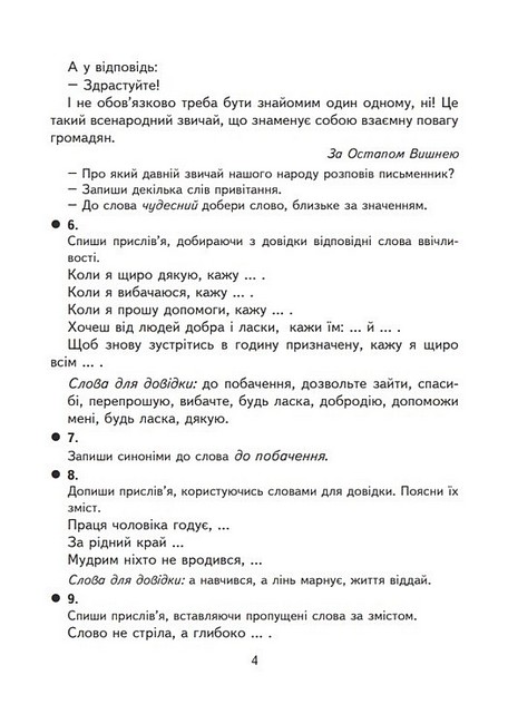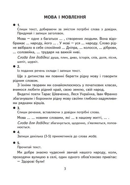 У посібнику подано різноманітні творчі завдання, зміст яких відповідає Державному стандарту початкової освіти, Типовим освітнім програмам з української мови для учнів 4 класу. Пропоновані вправи допоможуть дітям практично засвоїти та закріпити програмовий матеріал з даного предмета. Для учнів початкових класів, студентів педагогічних навчальних закладів, учителів.