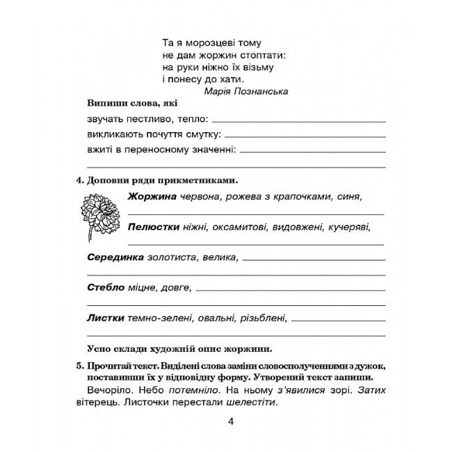 Нова українська школа Українська мова 4 клас Говоримо читаємо пишемо Зошит з розвитку зв’язного мовлення НУШ Будна Н. Богдан. У посібнику розроблено зміст уроків з розвитку зв’язного мовлення відповідно до вимог Державного стандарту початкової освіти та Типових освітніх програм з української мови для учнів 4 класу.