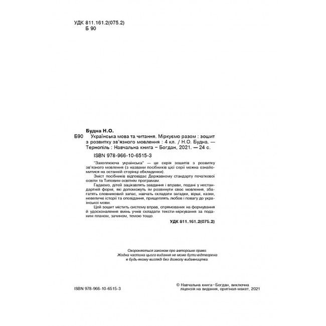 Зошит з розвитку зв’язного мовлення Українська мова та читання Міркуємо разом 4 клас НУШ Авт: Н.О. Будна Вид-во: Богдан 97425