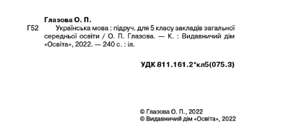 Підручник Українська мова 5 клас НУШ Авт: О. Глазова Вид-во: Освіта 104304