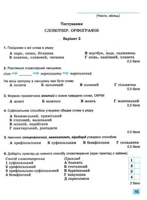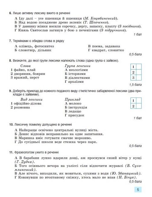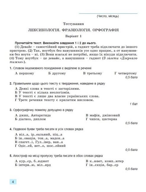 Посібник містить діагностичні (контрольні роботи), за допомогою яких можна оцінити навчальні досягнення учнів та учениць з української мови: