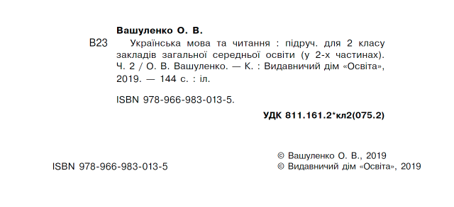 Підручник Українська мова та читання 2 клас Частина 2 НУШ Авт: Вашуленко О.В. Вид: Освіта 22402
