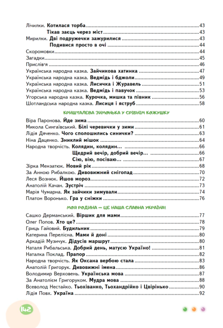 З цією метою в підручнику подано різні види текстів: художні твори народні й авторські; поетичні і прозові; науково-популярні, навчальні, медіатексти.