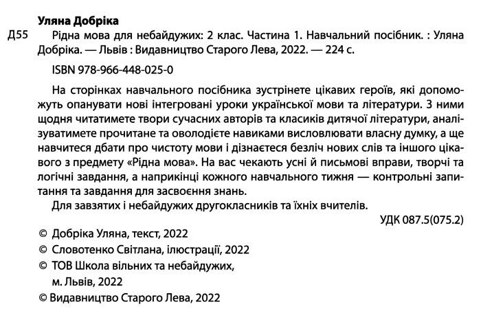 Навчальний посібник Рідна мова для небайдужих 2 клас Частина 1 Авт: У. Добріка Вид-во: Видавництво Старого Лева 86696