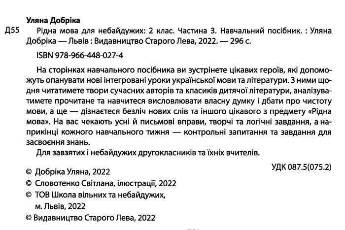 Навчальний посібник Рідна мова для небайдужих 2 клас Частина 3 Авт: У. Добріка Вид-во: Видавництво Старого Лева 86698