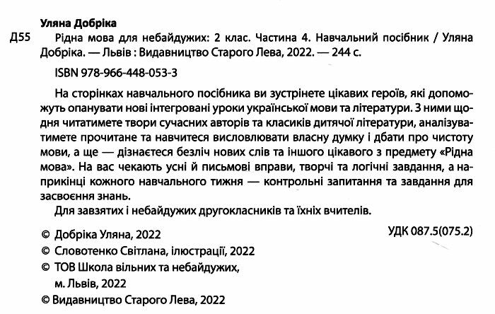 Навчальний посібник Рідна мова для небайдужих 2 клас Частина 4 Авт: У. Добріка Вид-во: Видавництво Старого Лева 86699