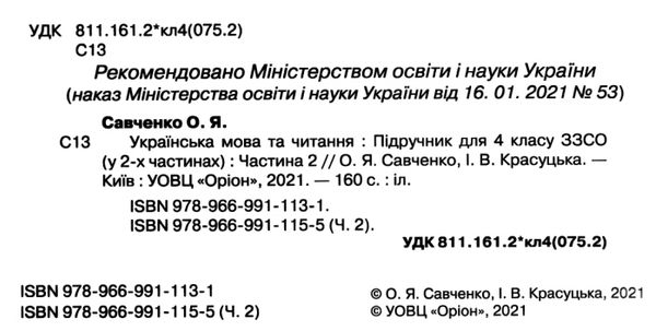 Підручник Українська мова та читання 4 клас, частина 2 НУШ Савченко О., Красуцька І.