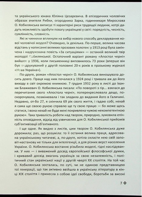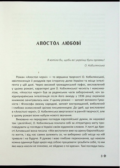Нинішнє перевидання останнього значного за обсягом і вершинного в ідейно-художньому плані твору Ольги Кобилянської «Апостол черні» подано в повному варіанті за автографом 1926–1929 років. Завдяки рукописам, пошукам науковців з кафедри української літератури ЧНУ ім. Юрія Федьковича та працівників літературно-меморіального музею Ольги Кобилянської він постає перед нами у своїй цілісності.
